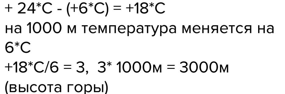 Определите высоту горы,если температура воздуха у поднгожичя была +24С , а на вершине составила +6С