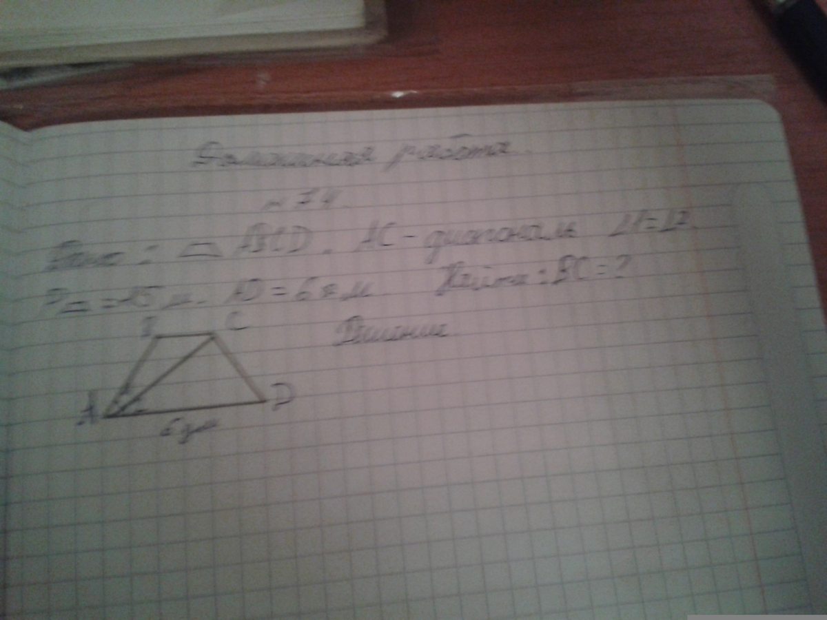 ПОМОГИТЕ ПЛИЗЗ диагональ равнобедренной трапеции делит её острый угол пополам. периметр трапеции равен 15 м, а большее основание - 6 м. найдите меньшее основание