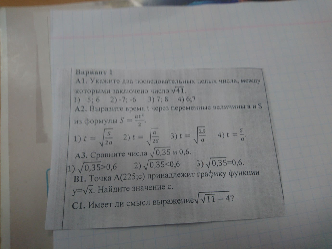 A1)4 A2)? A3)2 B1)Y=15 C1)нет потому что √11-4 должно быть