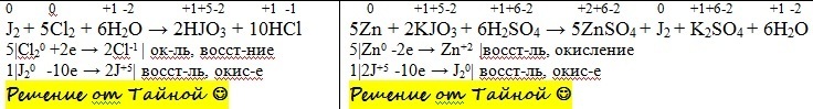 Zn+KJO3+H2SO4=ZnSO4+J2+K2SO4+H2O
