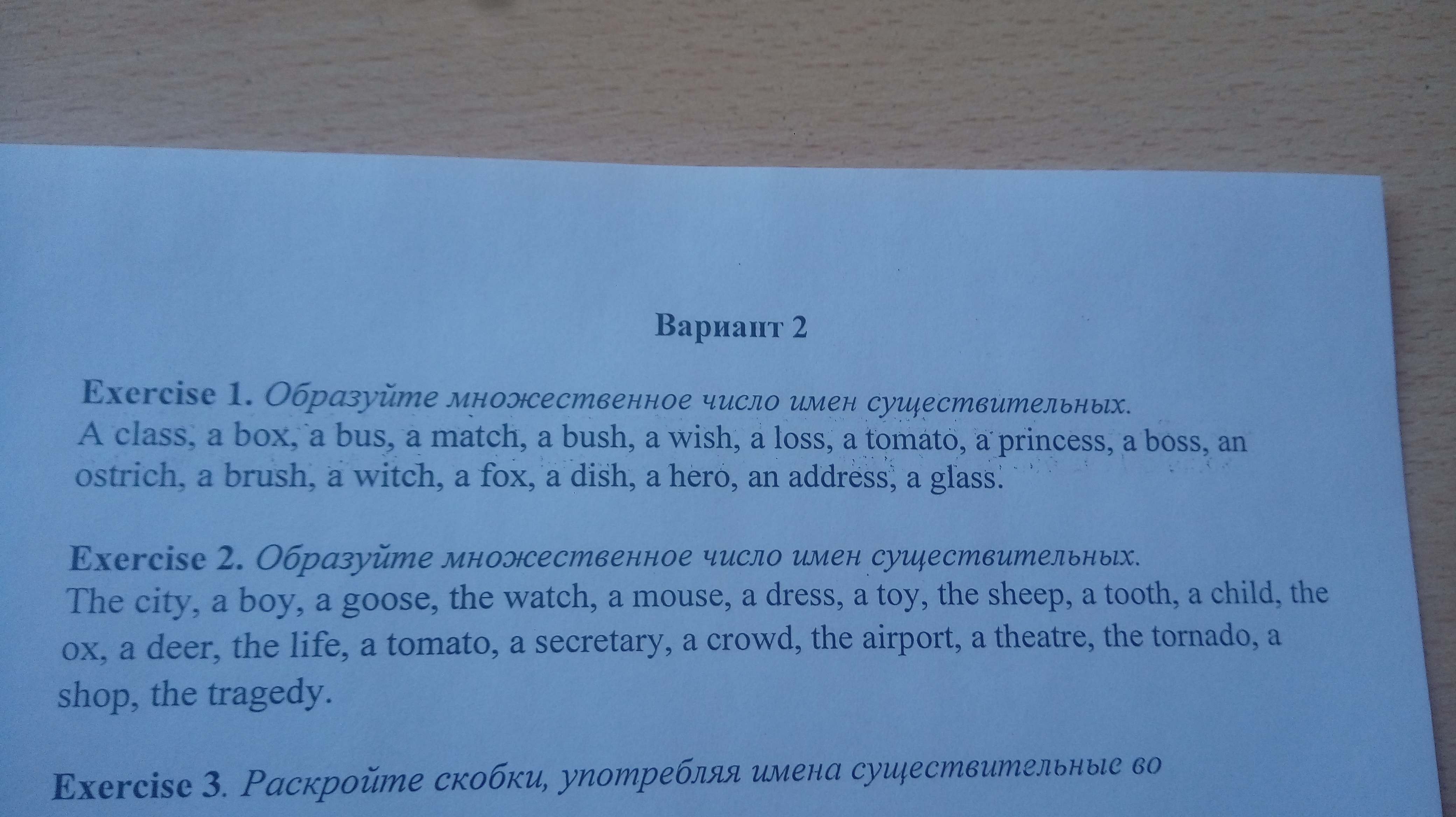 1. Сlasses, boxes, buses, matches, bushes, wishes, losses, tomatoes, princesses, bosses, ostriches, brushes, witches, foxes, dishes, heroes, addresses, glasses.