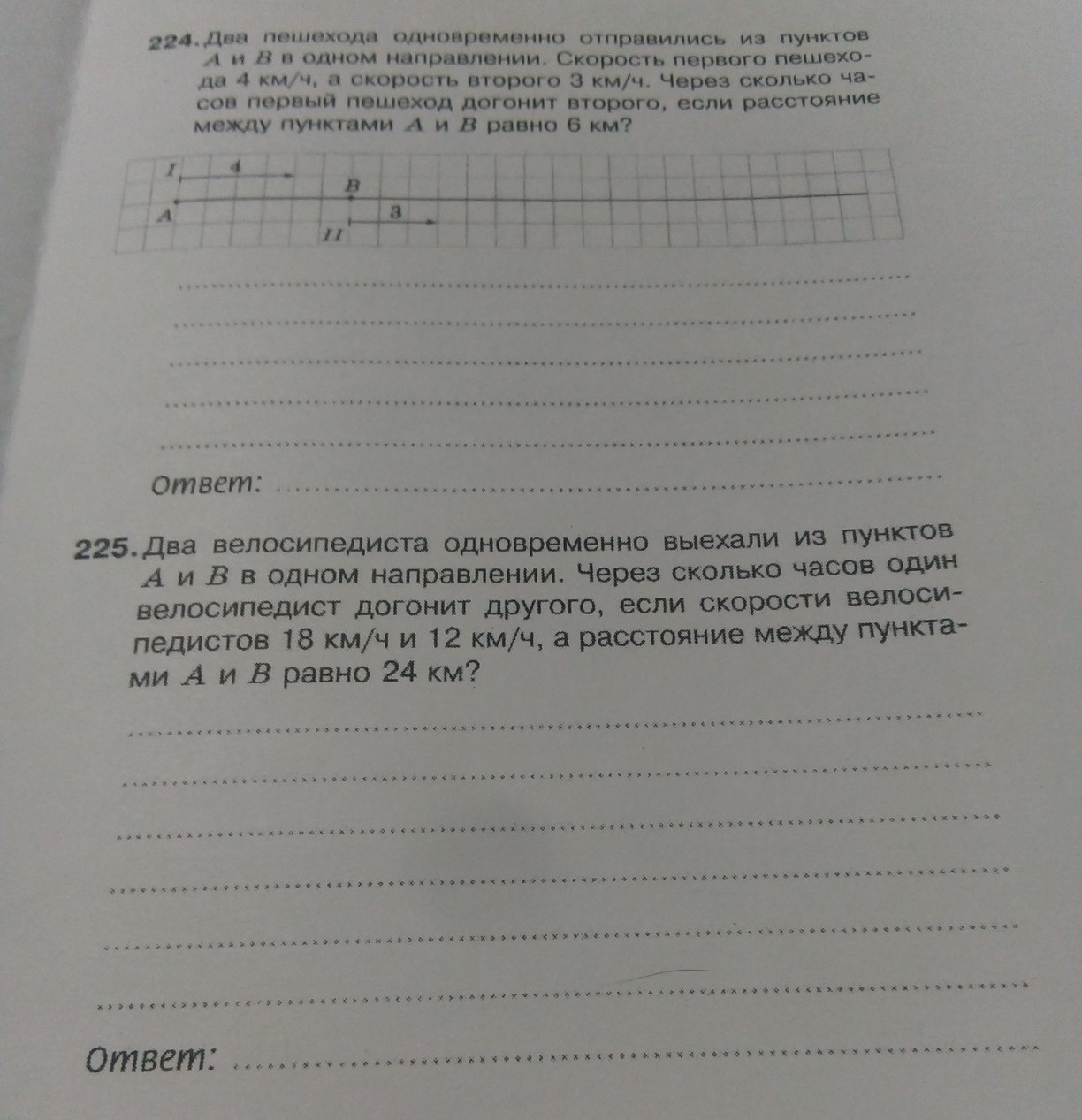 224). 4-3=1 км/ч - на столько скорость 1-го пешехода больше