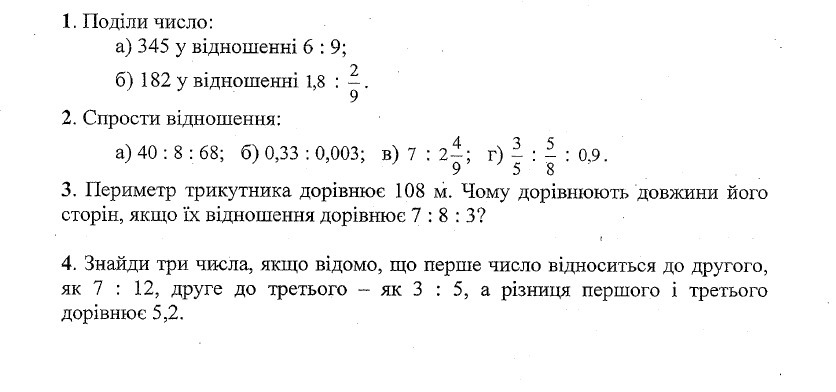 a) 40 : 8 : 68; б) 0,33 : 0,003; в) 7 : 2-2; г) 2 : 2 : 0,9.