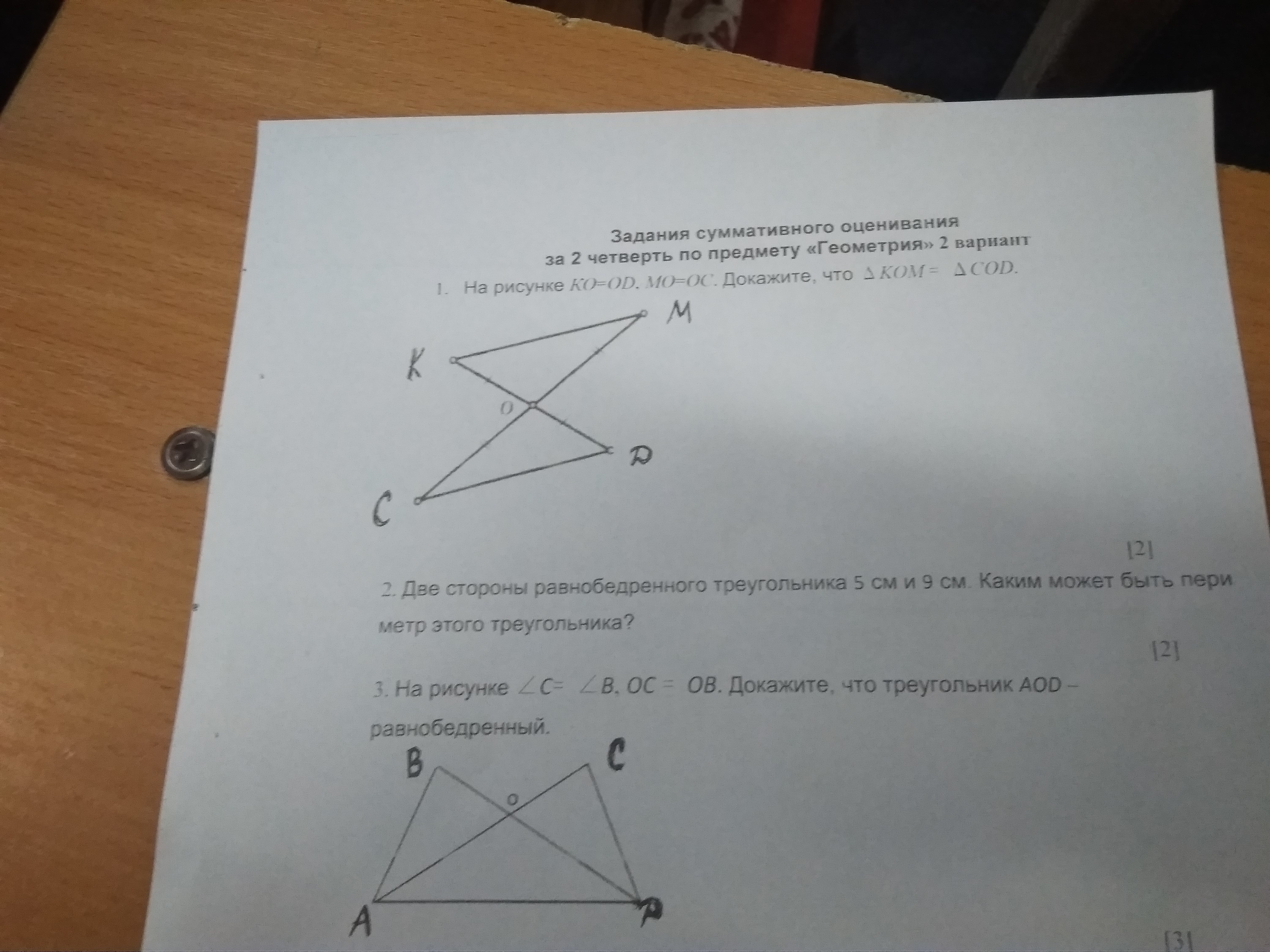 треугольник COD=треугольнику КОМ (по 1 признаку)