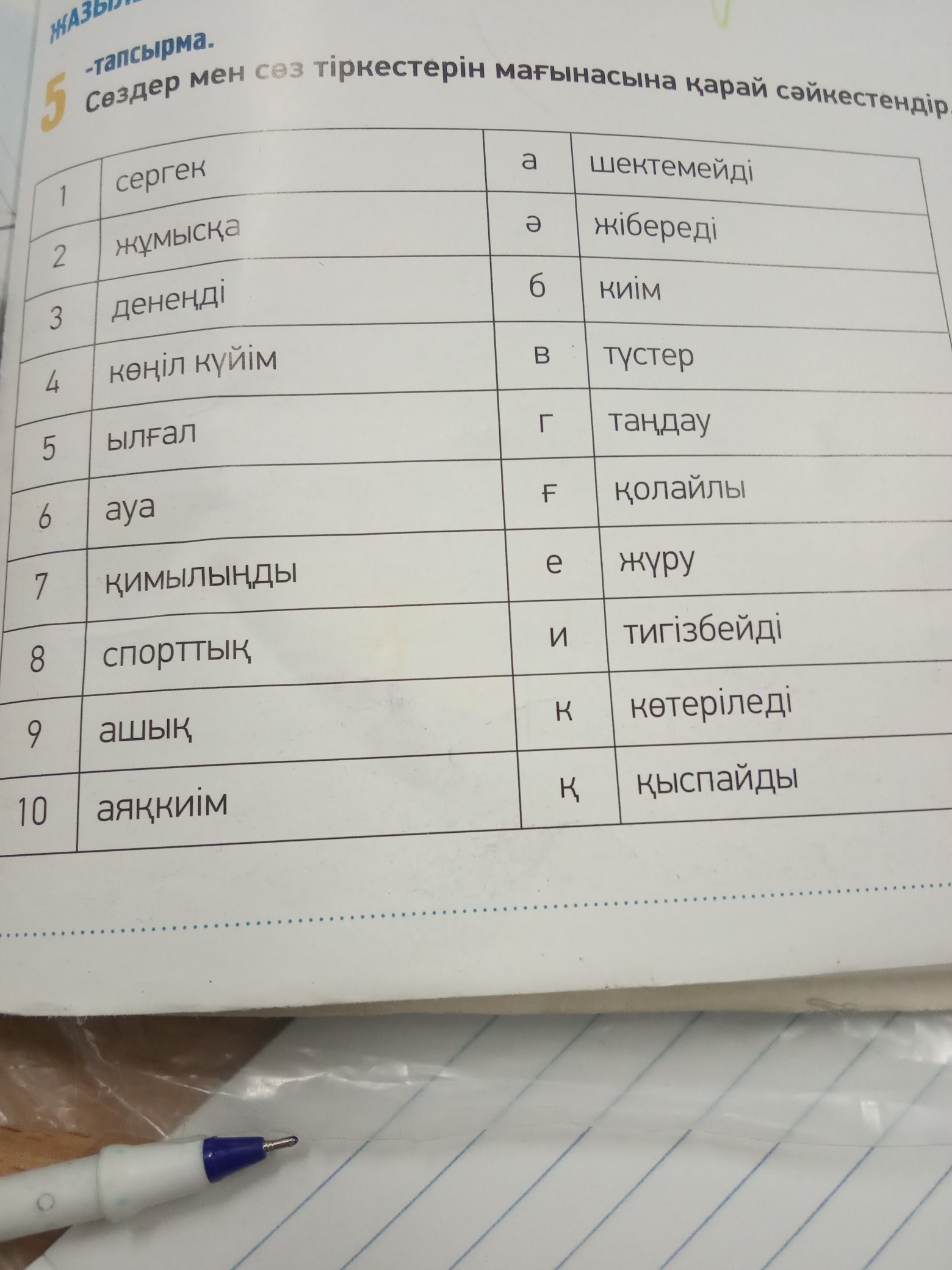1-е 2ғ 3қ 4к 5и 6ә 7а 8б 9в 10г