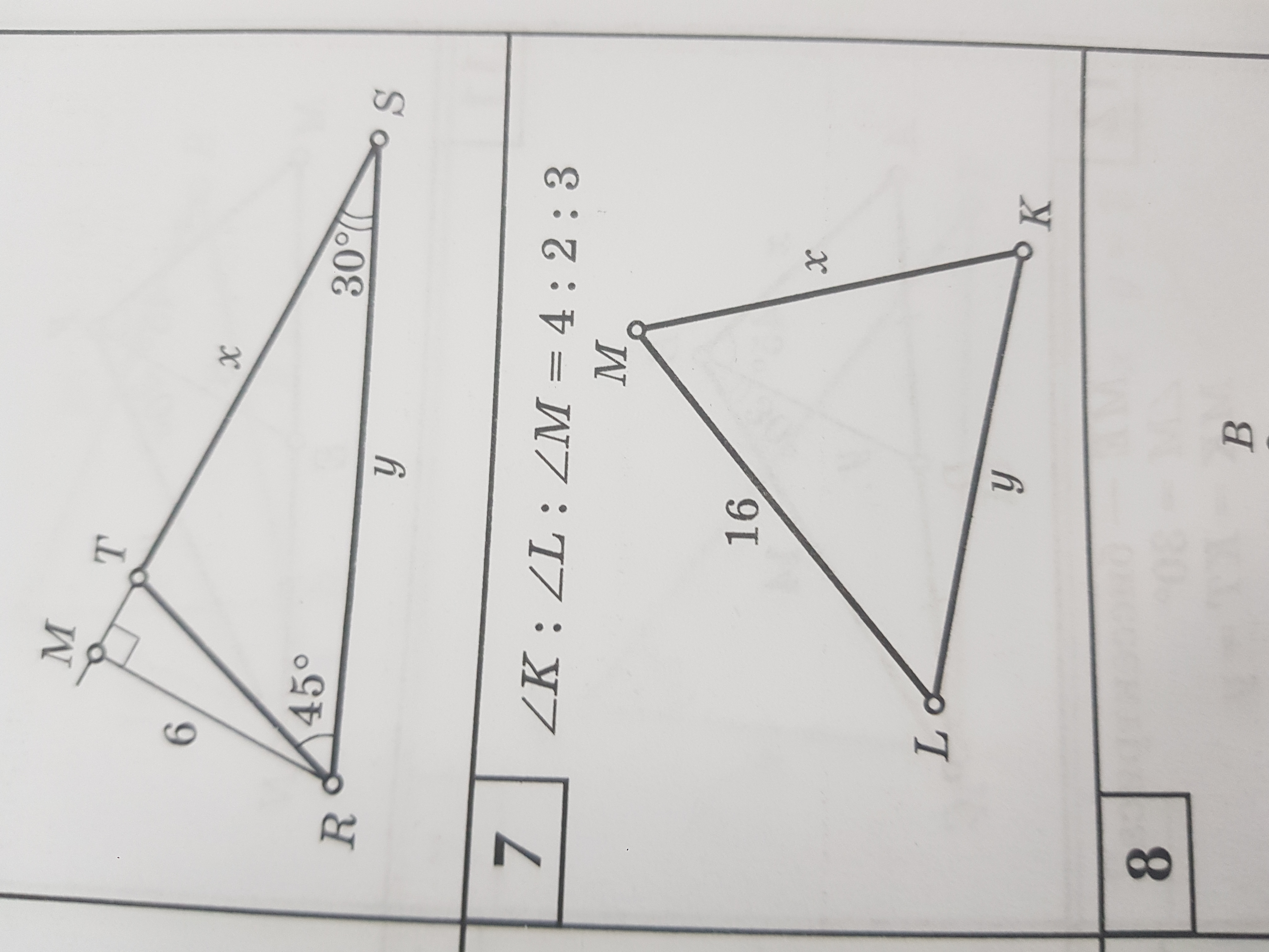 Сумма углов треугольника равна 180°, т.к углы делятся в соотношении 4:2:3, то они образуют 9 частей, каждая из которых равна 180°:9=20°, таким образом <К=80° <L=40° <M=60°, далее я не уверен, но вроде-бы здесь если против угла в 80° лежит сторона в 16 см, то против угла в 40 сторона в 8 см, а против угла в 60° сторона 12 см