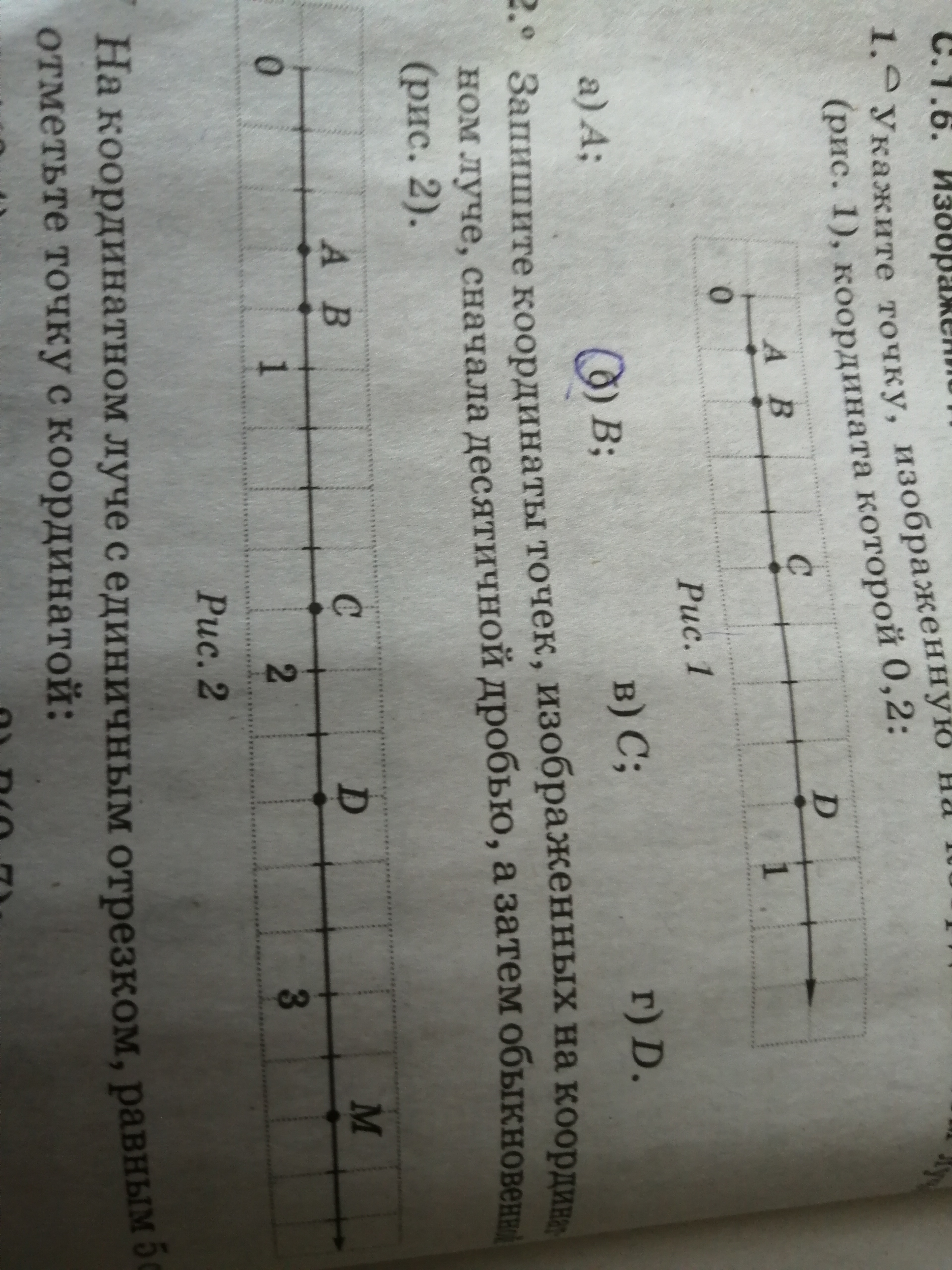 Запишите координаты точек, изображенных на координантном луче, десятичной, а затем обыкновенной дробью.