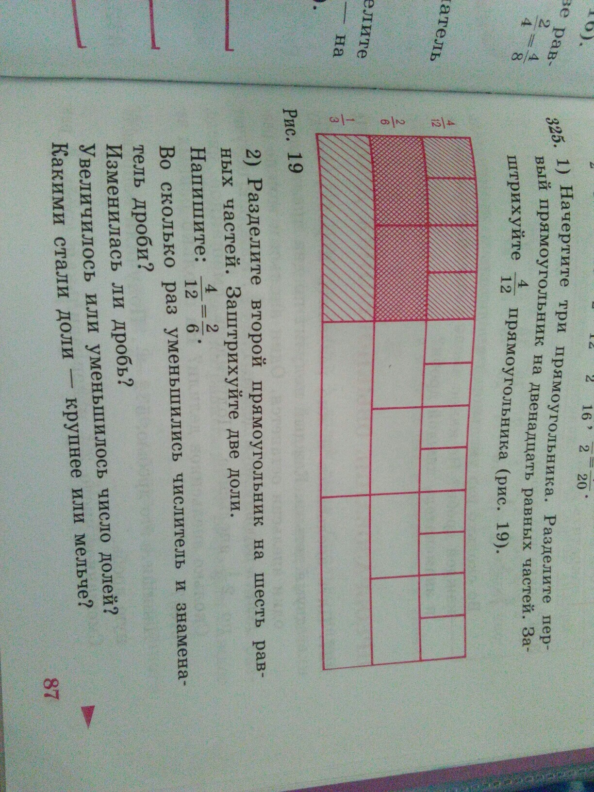 1) нужно перерисовать рисунок из учебника. Можно взять сторону прямоугольника 12 см и 1 см. разделить на квадратики по 1 см. Заштриховать как на рисунке 4 доли.