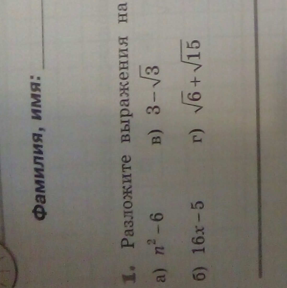 (n-√6)(n+√6)