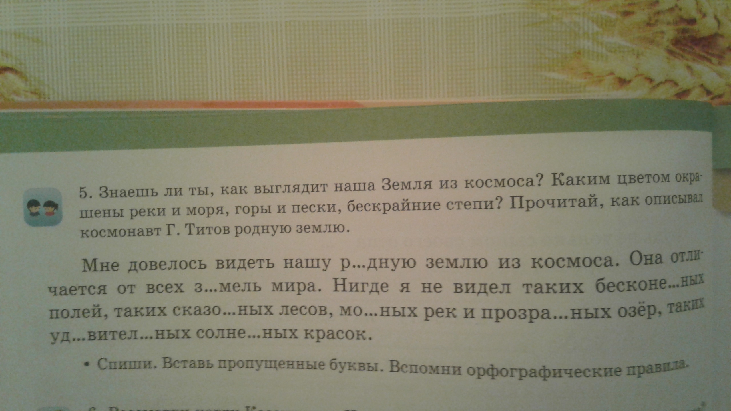 Мне довелось видеть нашу родную землю из космоса. Она отличается от всех земель мира. Нигде я не видел таких бесконечных полей,таких сказочных лесов,модных рек и прозрачных озёр,таких удевительных солнечных красок.