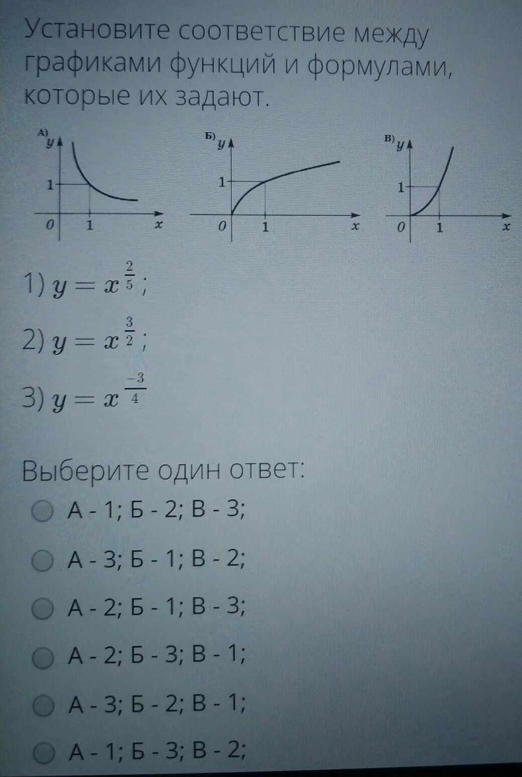 A - 3; Б - 1; В - 2.