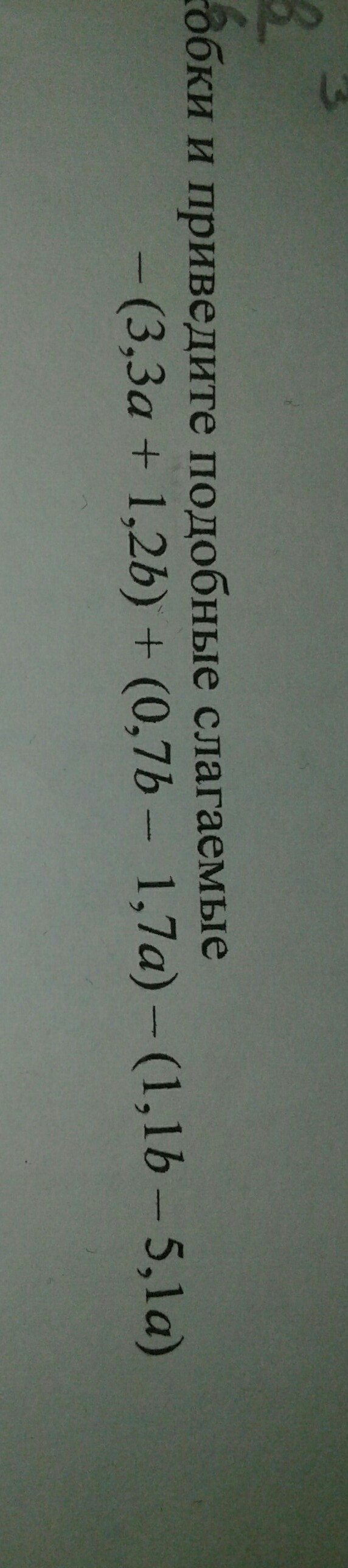 = - 3,3a - 1,2b + 0,7b - 1,7a - 1,1b + 5,1a =
