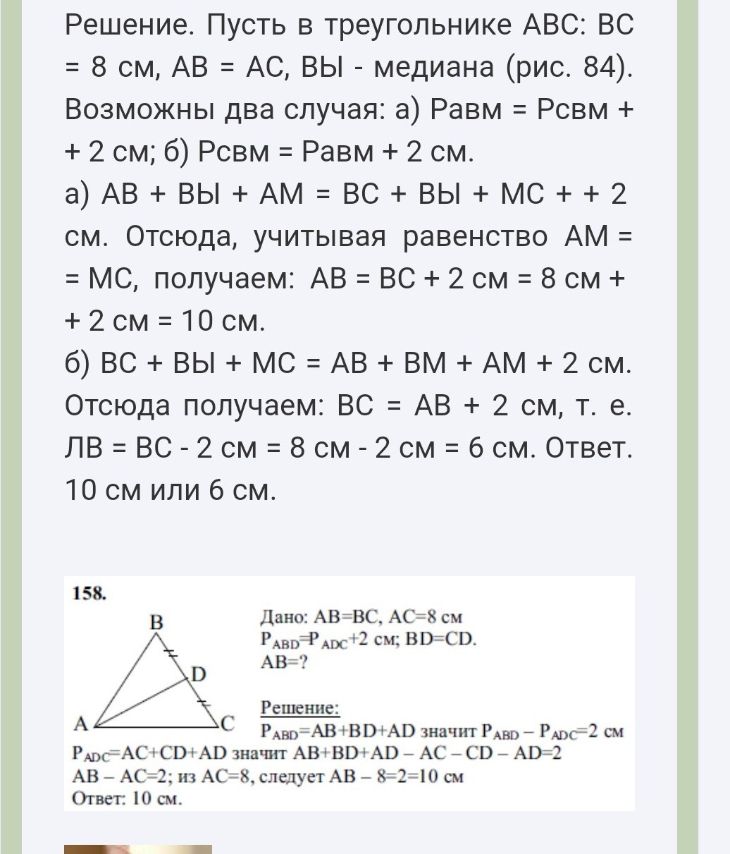 Основа равнобедренного треугольника равна 10 см, а медиана, проведенная к боковой стороне, - 8 см. Найдите боковую сторону треугольника
