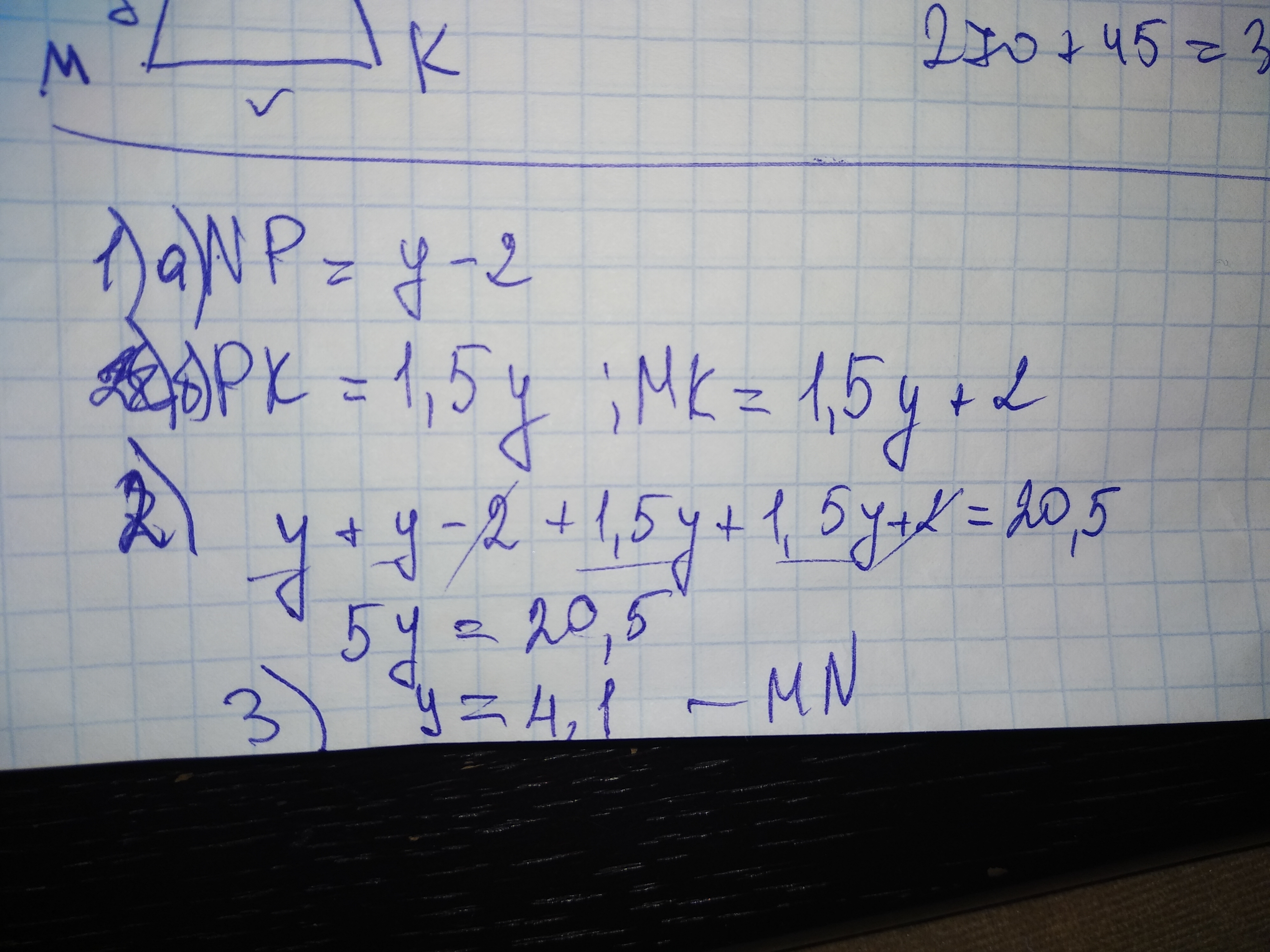 2)зная, что периметр MNPK=20.5 см и используя данные пункта 1, составьте уравнение