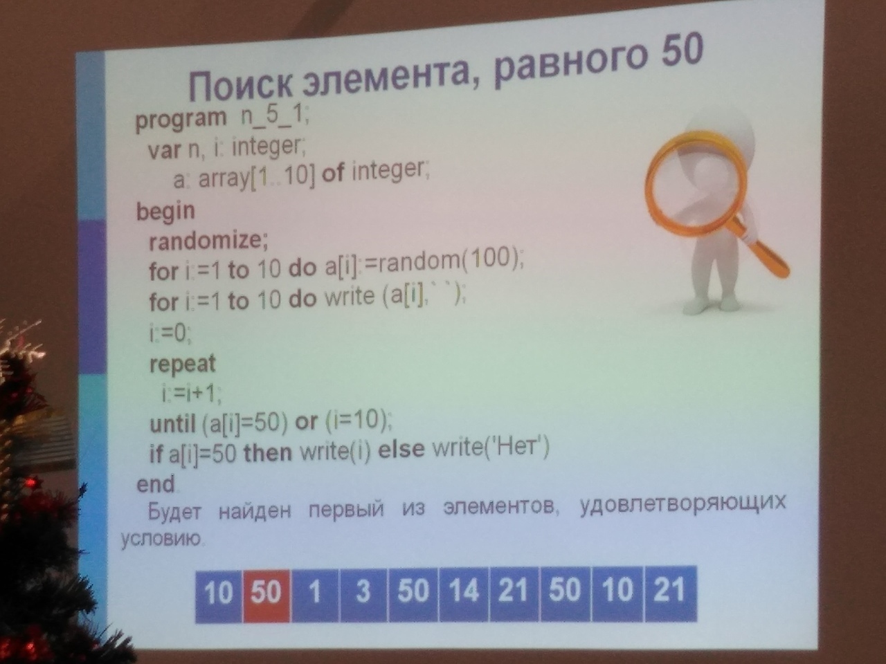 var a: array[1..10] of integer := (10, 50, 1, 3, 50, 14, 21, 50, 10, 21);