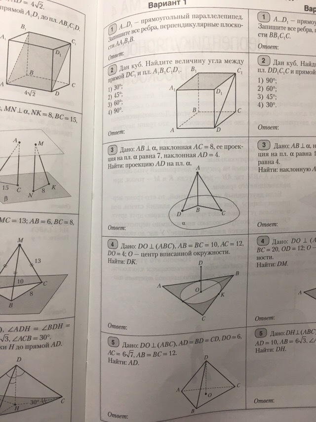Ошибочка: В первом неправильно, Ответ это AD, A1D1, BC, B1C1