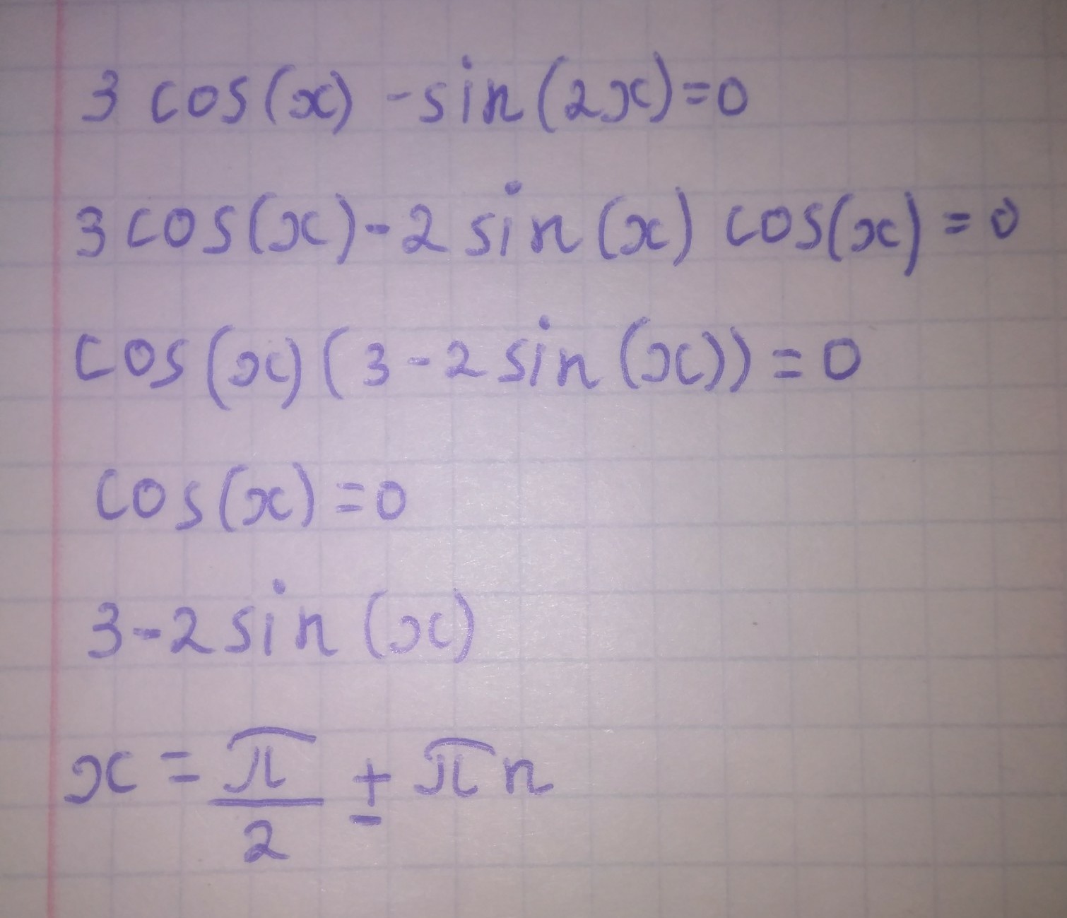 3-2sinx = 0. А во втором множестве решений удивило слагаемое ± πn. Что за n в этом равенстве?