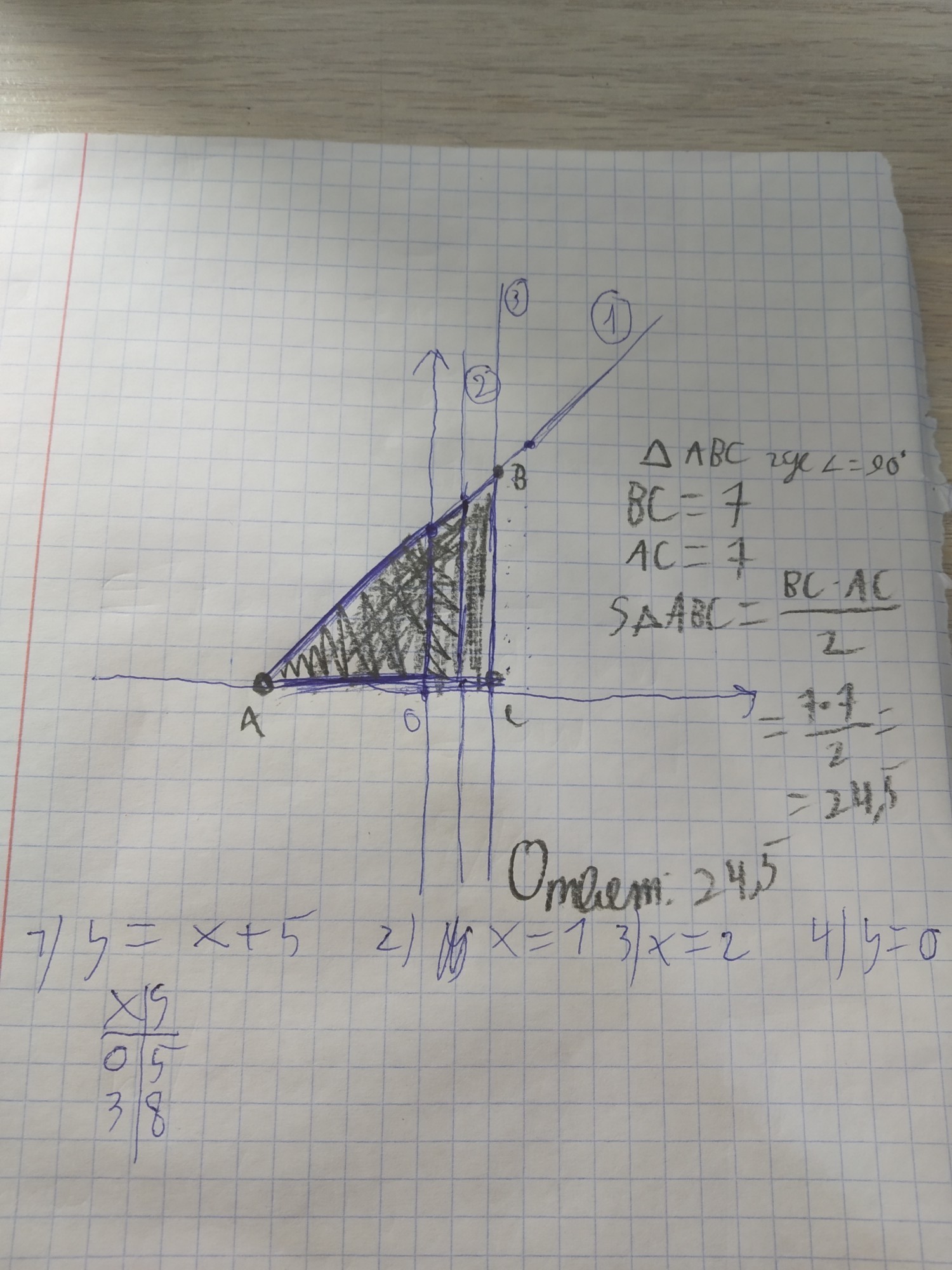 Найдите площадь фигуры, ограниченной линиями y=x+5, x=1, x=2, y=0( предварительно сделав рисунок.