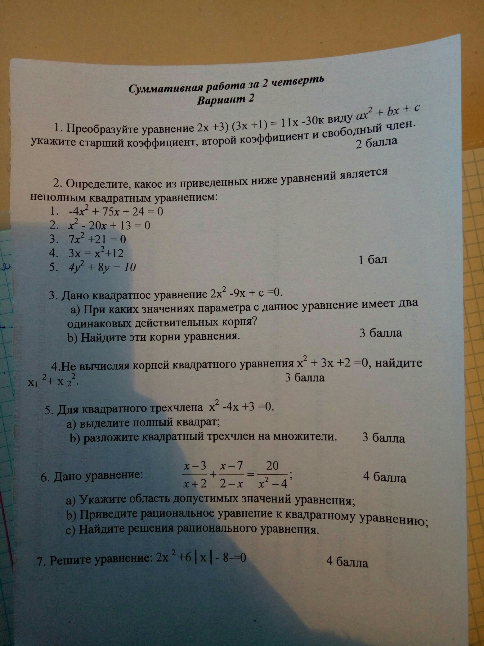 7 2x(во второй)+6х-8=0 х(больш или рав.) 0