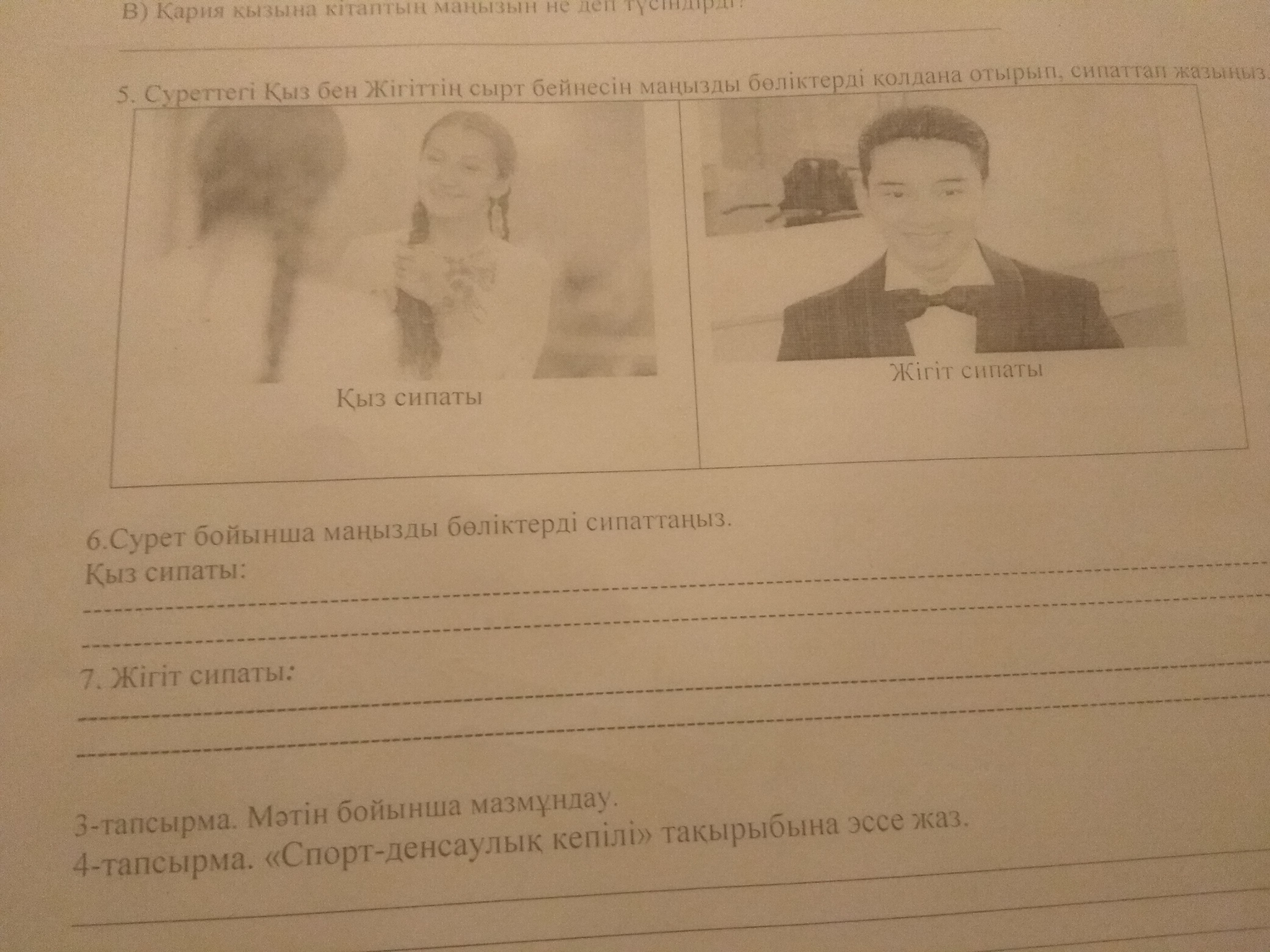 6. Қыз сипаты.Ақылды, көріктеде көрнекті, өнерлі, тəрбиелі, үлгілі қазақтың қарапайым қызы