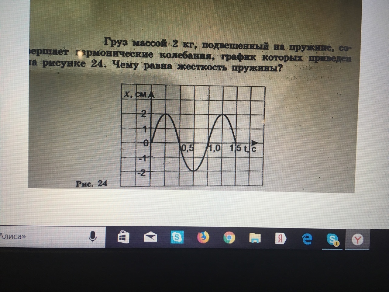 По графику период Т=1с, а для колебаний Т=2π√(m/k)=1, отсюда k=4π²m/T²=79 Н/м