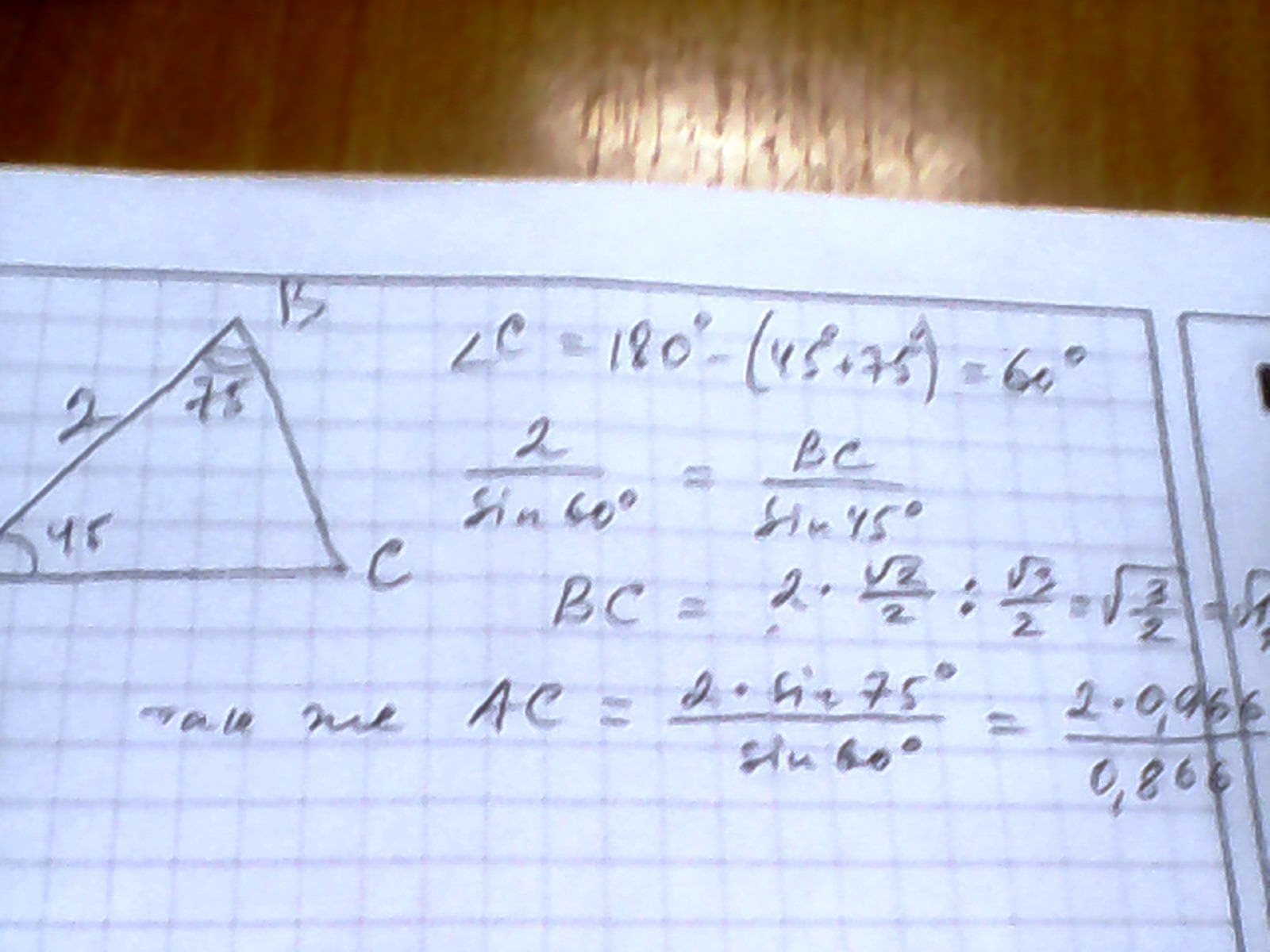 через теорему синусов
