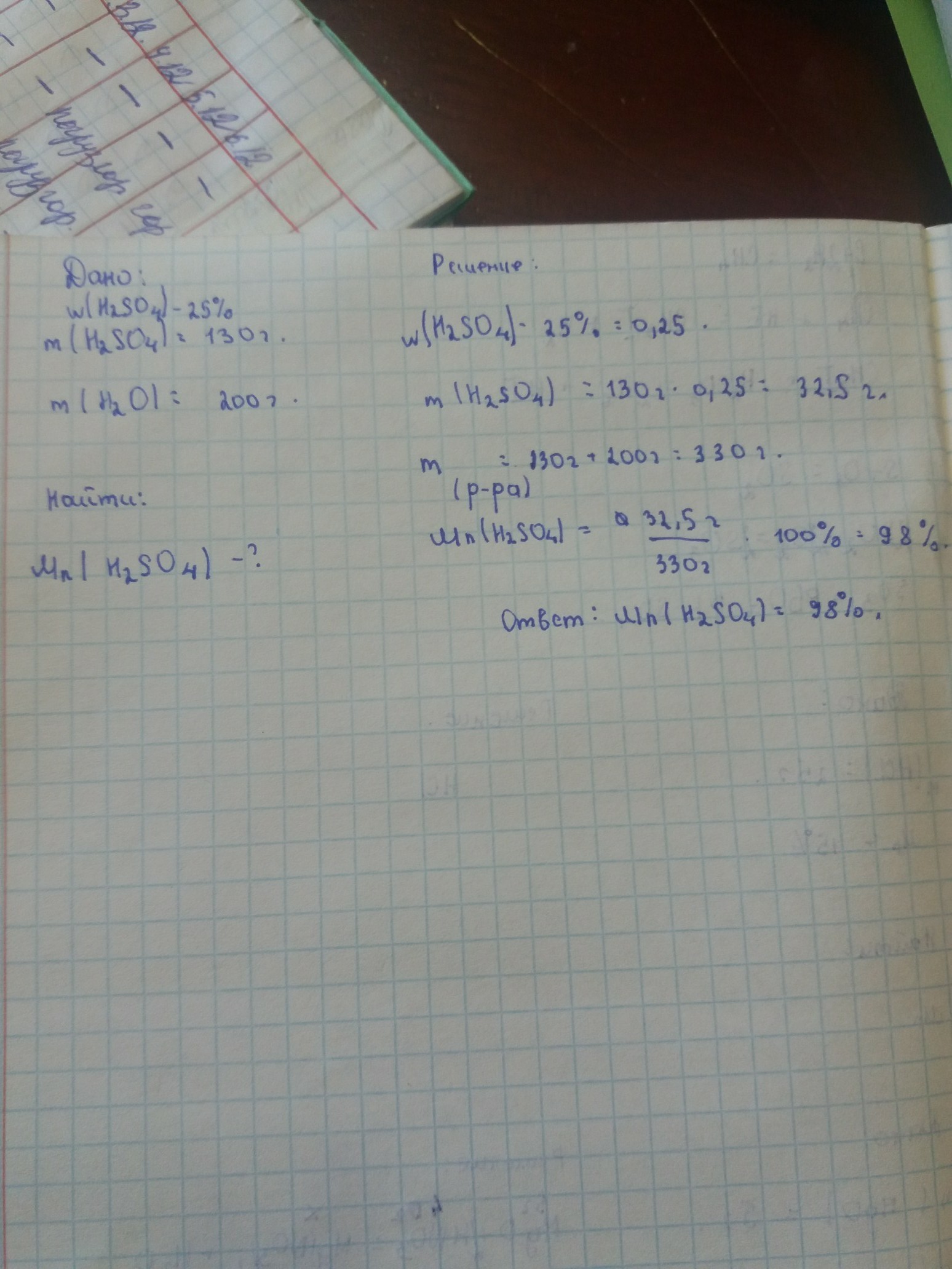 К 130г 25% раствора серной кислоты добавили 200г воды. Вычислить массовую долю серной кислоты в полученном растворе