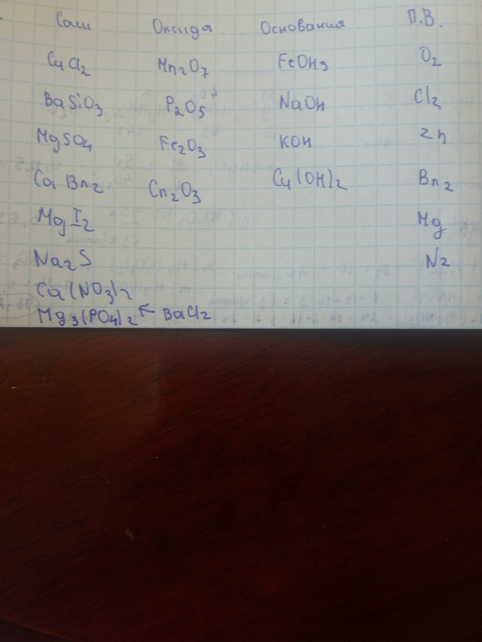 Химия 8 класс помогите срочно надо распределить по группам соли, оксиды, основания, простые вещества