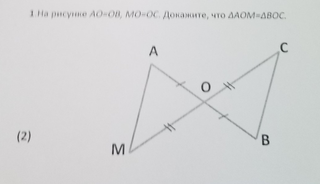следовательно треугольник АОМ=ВОС(по двум сторонам и углу между ними)