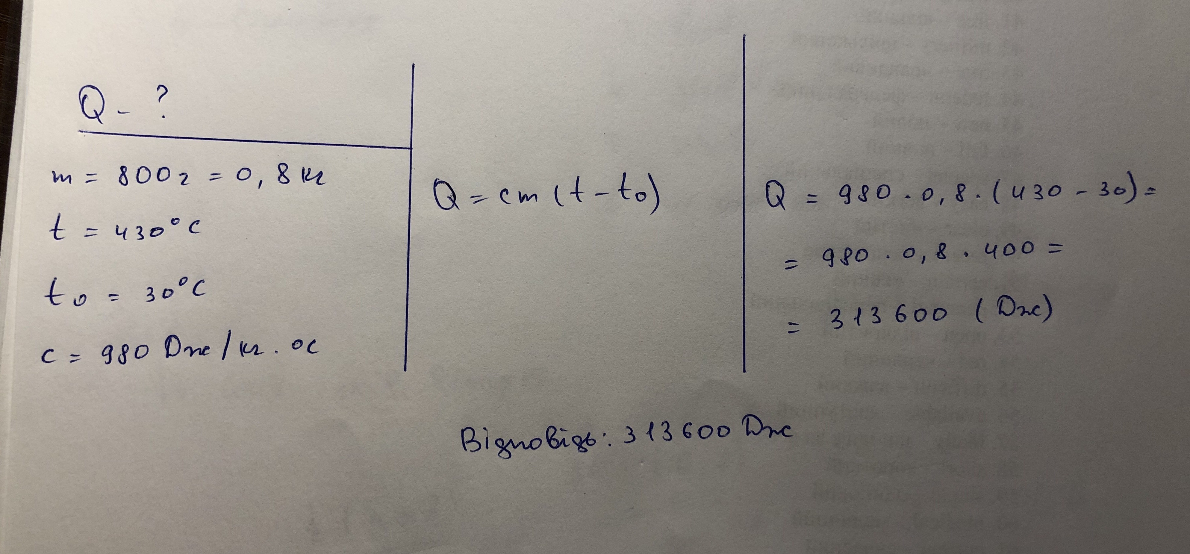 Какое количество теплоты необходимо, чтобы нагреть 800 г алюминия от 30°C до 430°C