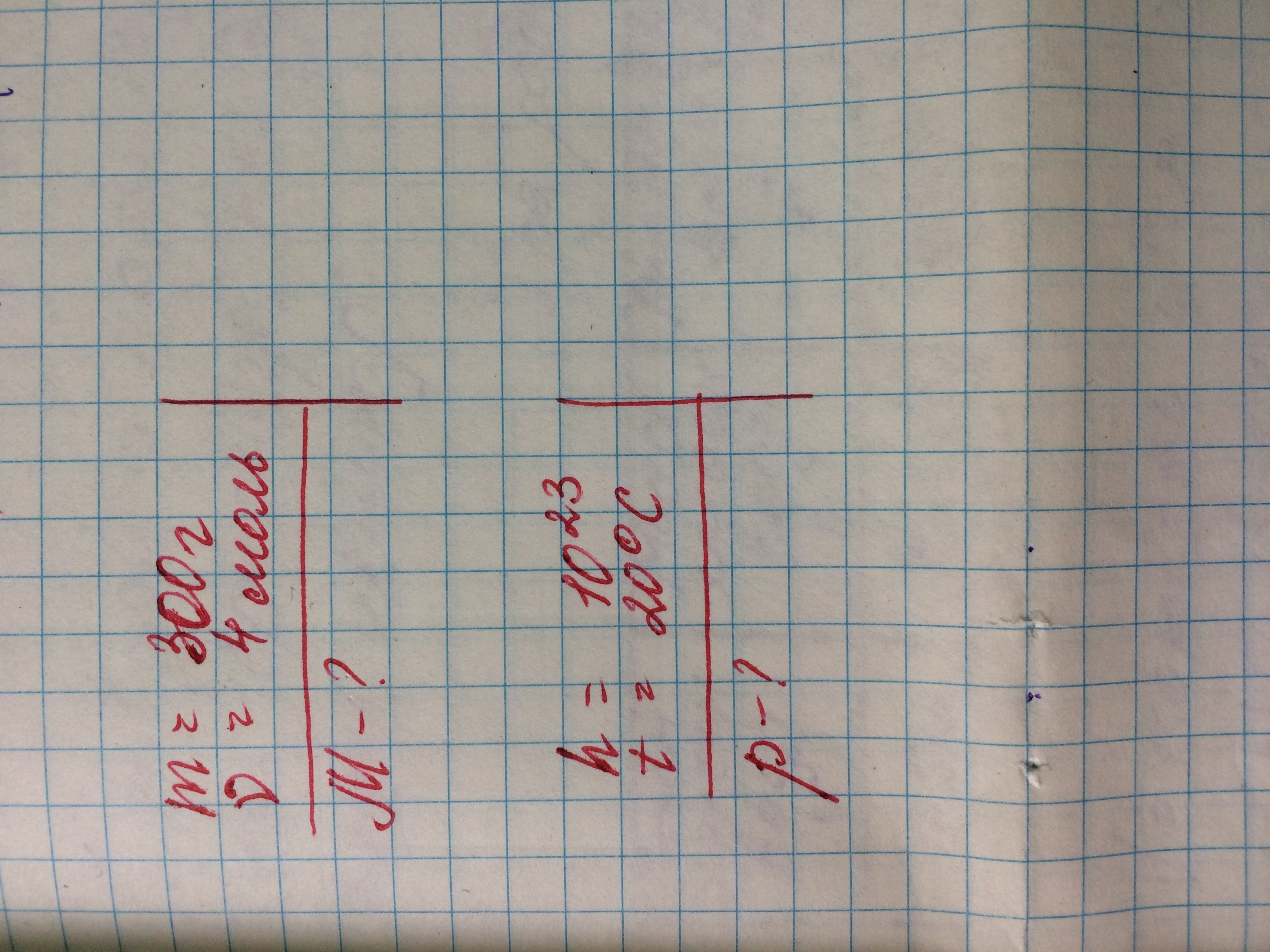 1) m=0.3 кг v=4 моль M=?
