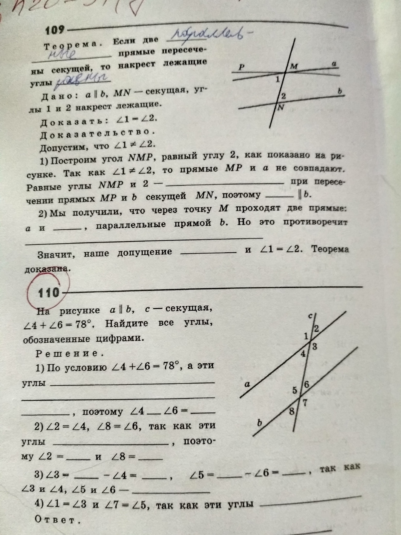 110. ........ являются накрес лежащими при a║b и c-секущей, поэтому ∠4=∠6=78/2=39