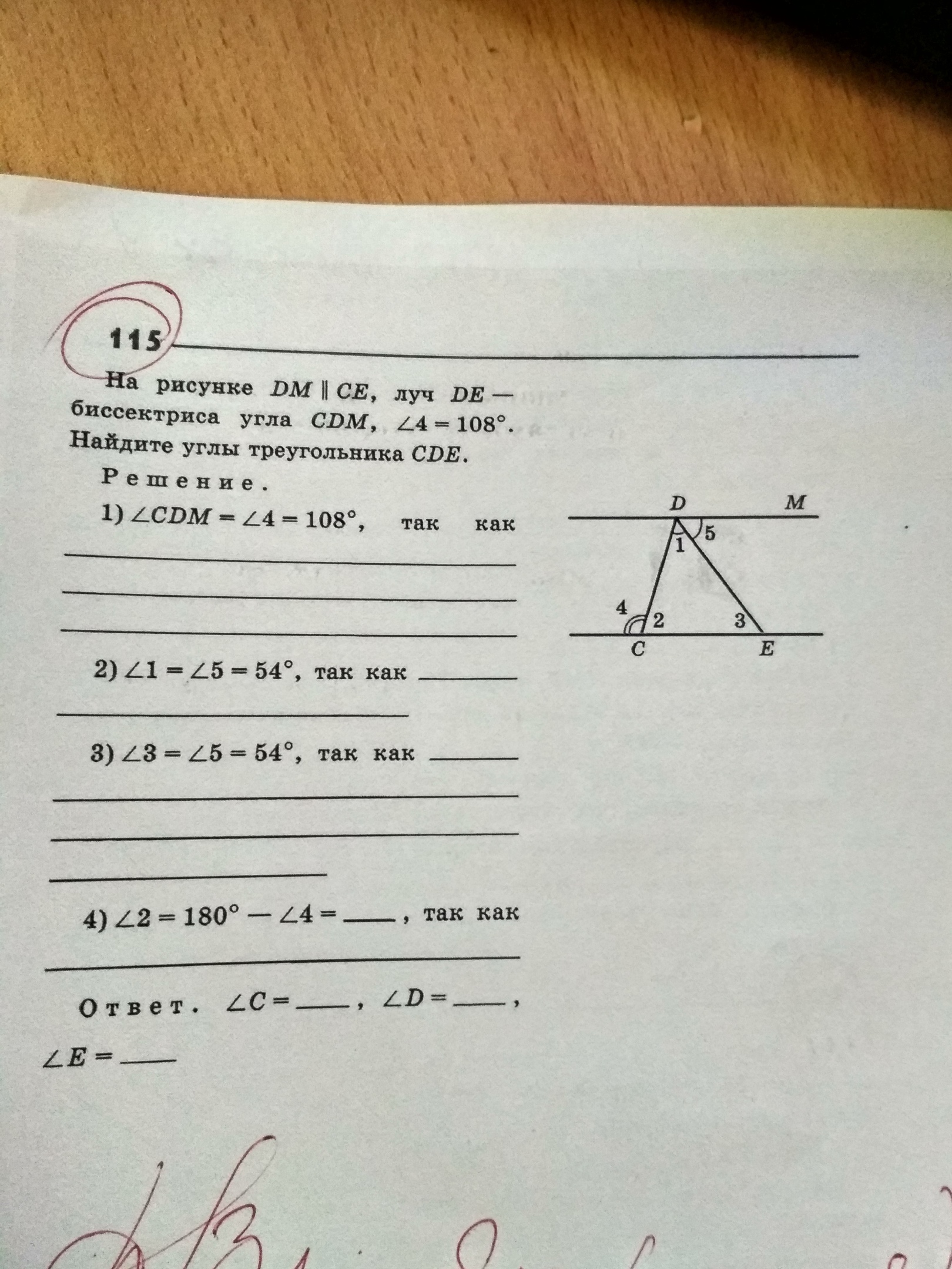 114. ∠1=∠2, ТАК КАК Δ DMN - равнобедренный с основанием DN ( так как MN=MD по условию)