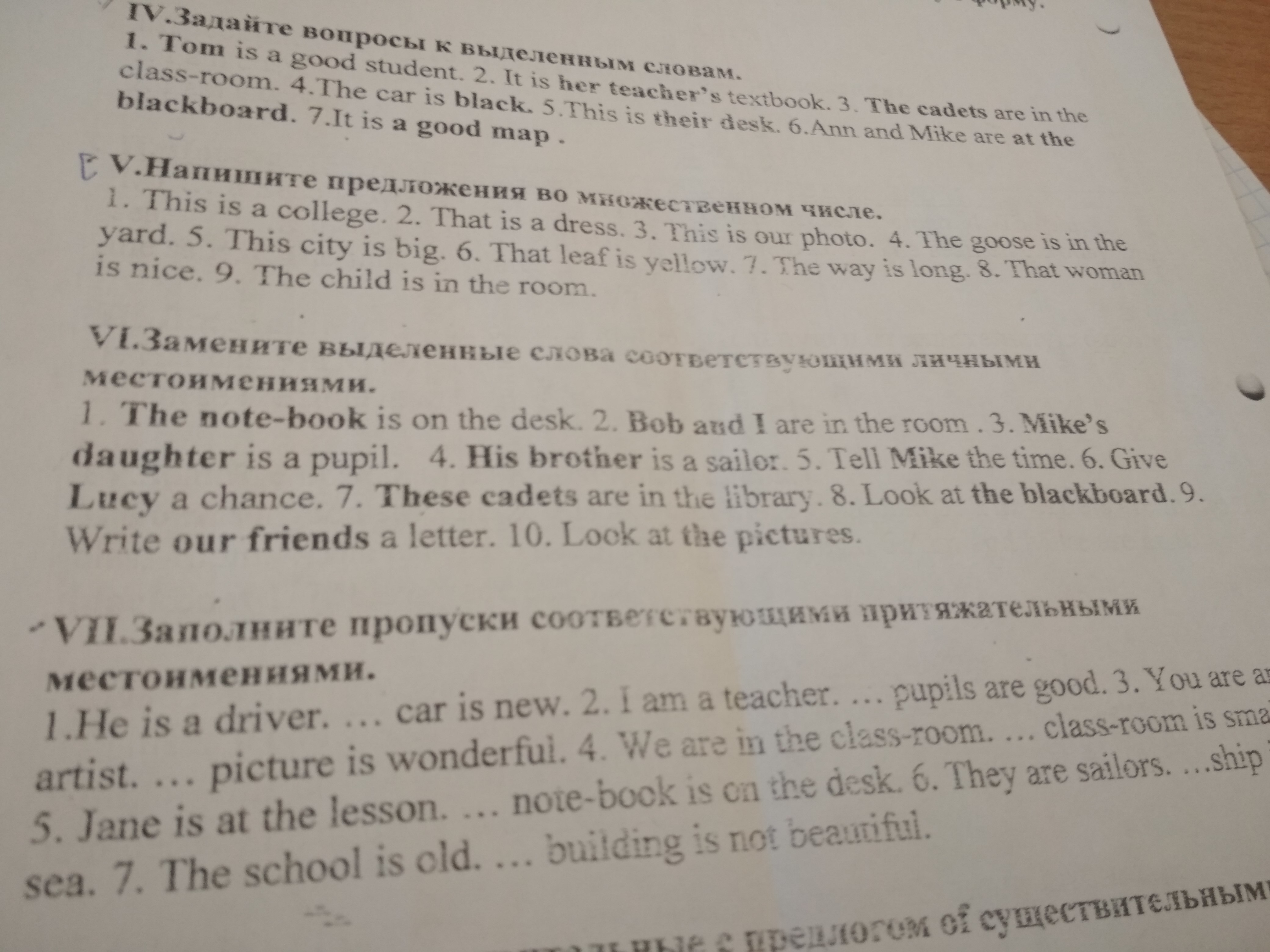 There are colleges.Those dresses.These our photoes.The geese is in the yard.These cities is big.Those leaves is yellow.The ways is long.Those women is nice.The children is in the room.