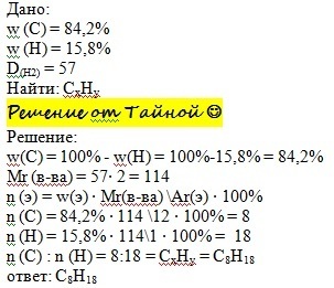 выведите молекулярную формулу углеводорода массовая доля водорода которого равна 15,8% а его относительная плотность по водороду равна 57
