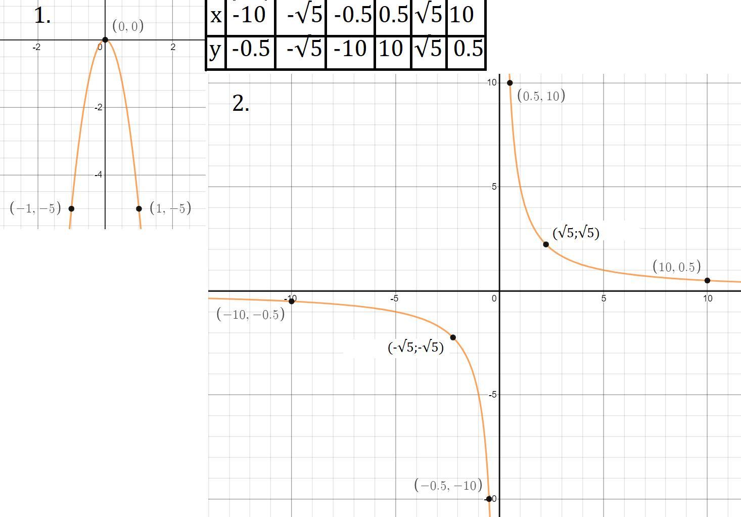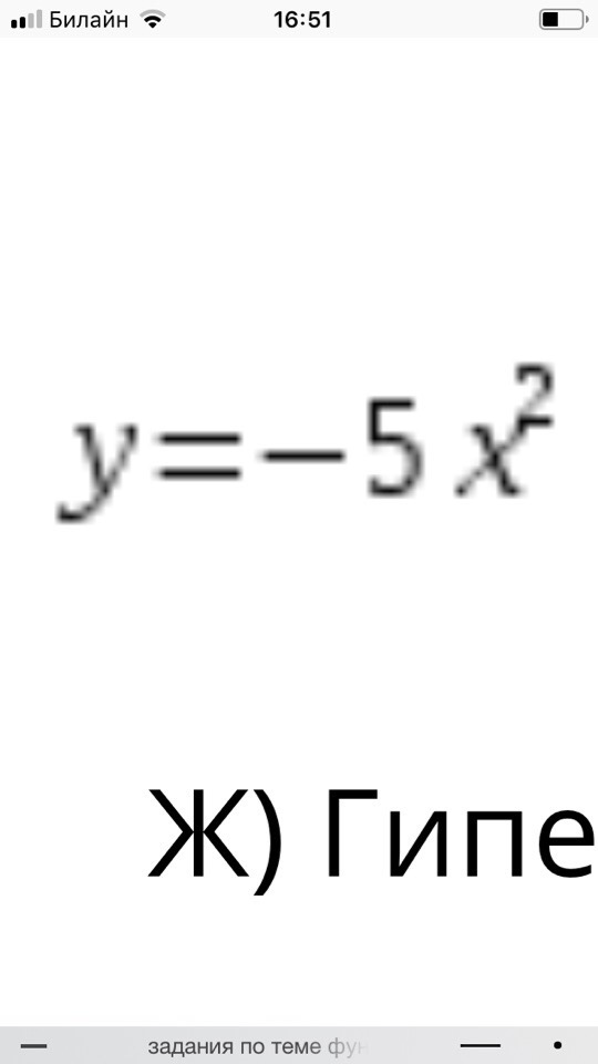 Это парабола, ветви которой направлены вниз координата её вершины (0;0), точка пересечения с осями координат следующая: (0;0). Построим параболу по трём точка (-1;-5)(0;0),(1;-5).