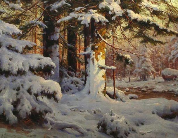 Фет "Ель рукавом" и картина Шильдера "Зимний лес"