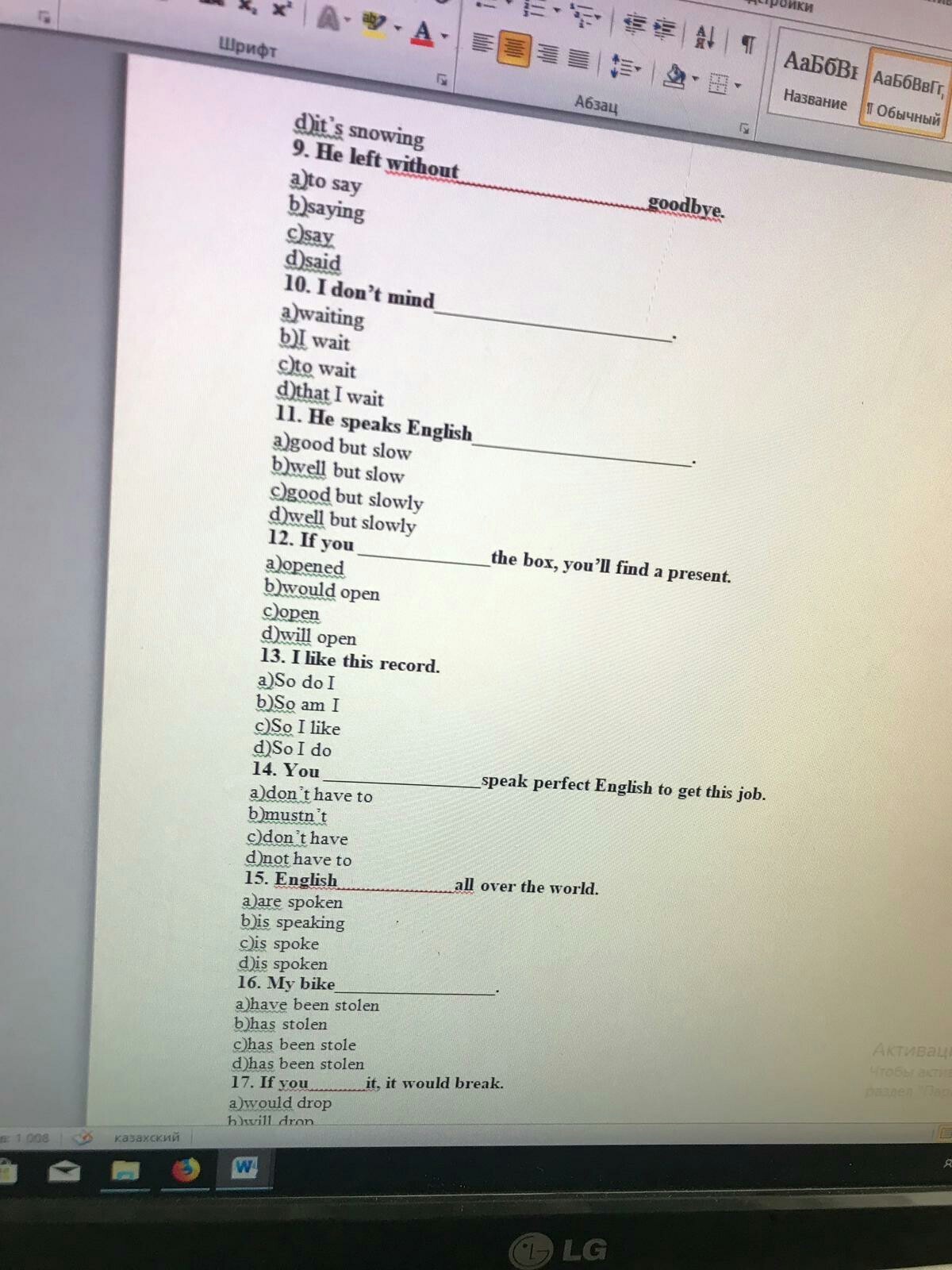 9b 10a 11d 12c 13a 14a 15d 16d 17 dropped