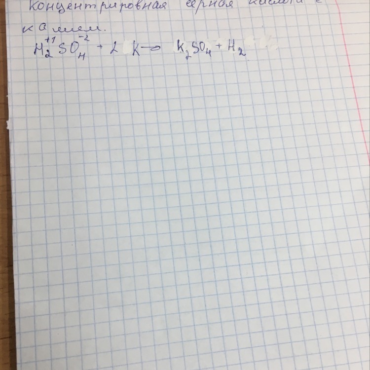 H_{2} SO_{4} + 2K → K_{2}SO_{4} + H_{2}