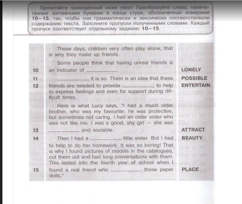 10 loneliness 11 Possibly 12 entertainment 13 attractive 14 beautiful 15 replaced