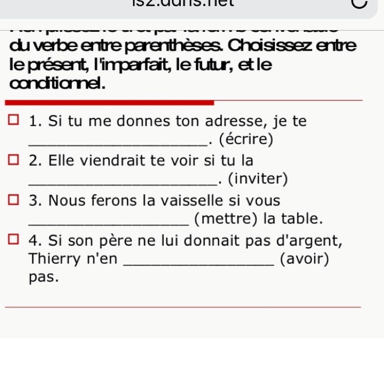 1. je t'écrirai 2. tu l'invitais 3. vous mettez 4. aurait