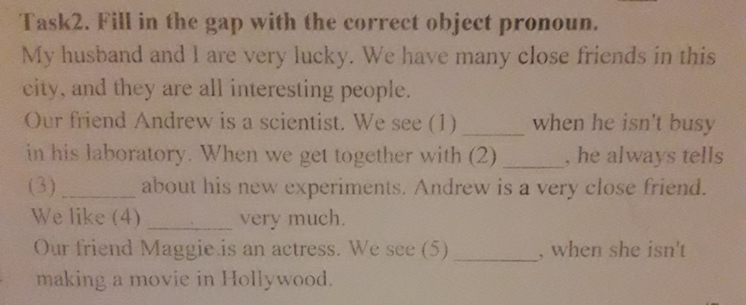 Who is that lady? Why are youlooking at HER ? Do you know that young handsome man?-Yes, I study with HIM. Please, listen to ME. I want to express my point of view. These puppies are so nice! Do you want to look at THEM. We like this house. We're going to buy IT. He can't see ANYTHING because we are sitting in the last row. Where are the keys to our flat? I can't find THEM. Where is Ann? I want to talk to HER. This snake is poisonous. I'm very afraid of IT. Don't wait for ME for dinner. I'll return very late at night. He left Polotsk long ago. I haven't seen HIM since. You can fully rely on US. We won't let you down.