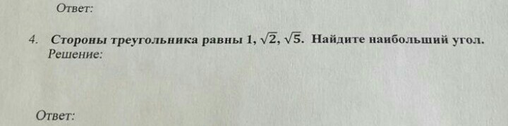 Представим 1 как корень 1 так как наибольший угол лежит напротив большей стороны, следовательно угол лежащий напротив стороны корень из 5 самый наибольший