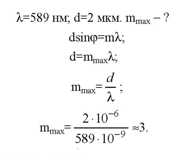 2)Определите наибольший порядок спектра,наблюдаемый при падении плоской волны на дифракционную решетку с периодом 0,2 мм и длиной 500 нм