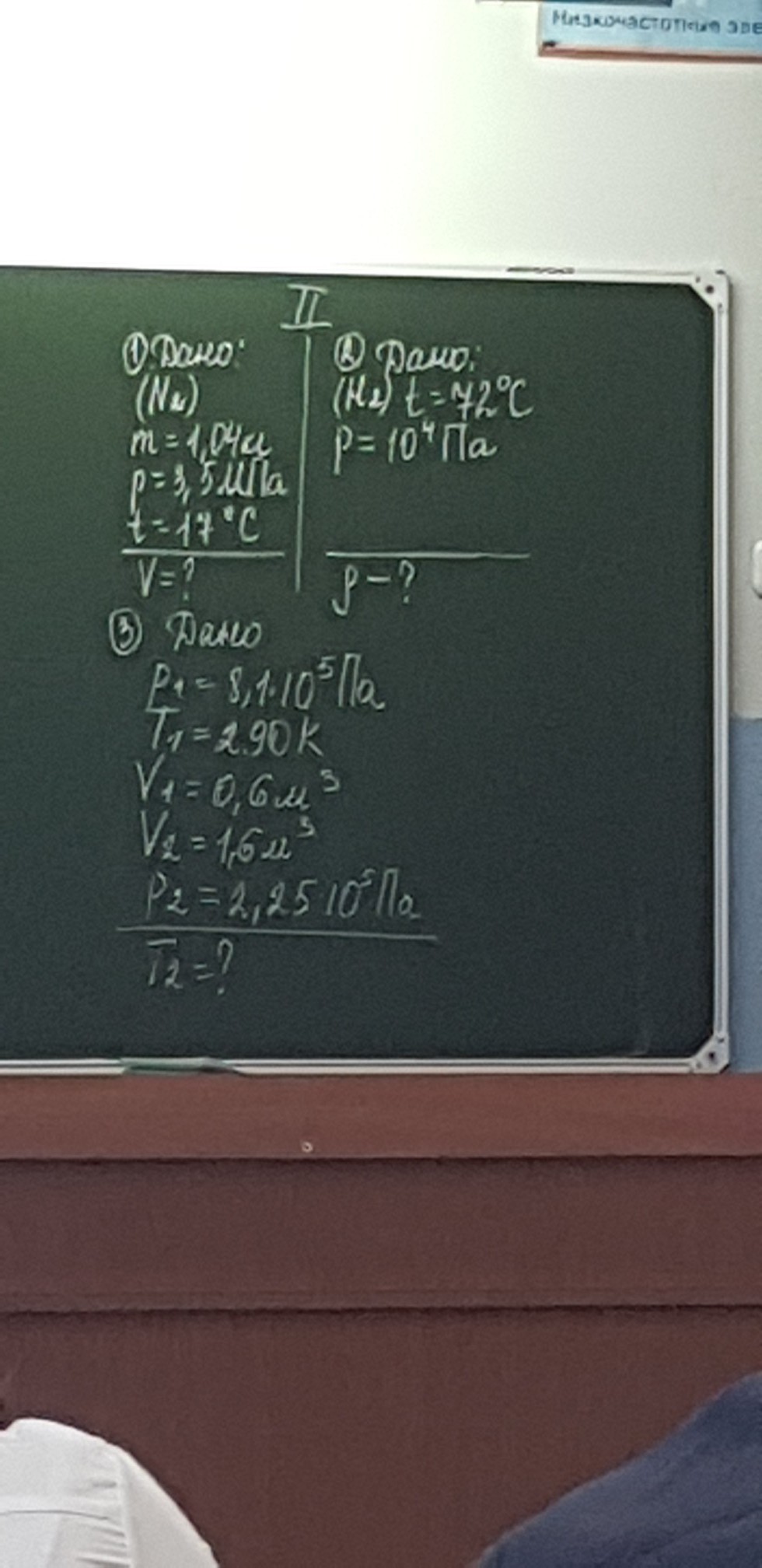 3) P1*V1/T1=P2*V2/T2 T2=P2*V2*T1/P1*V1=2,25*10^5*1,6*290/8,1*10^5*0,6=214,8 K