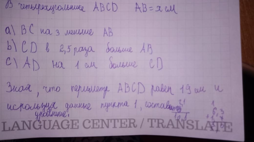 АВ=х ВС=х-3 СД=2.5х АД=2.5х+1