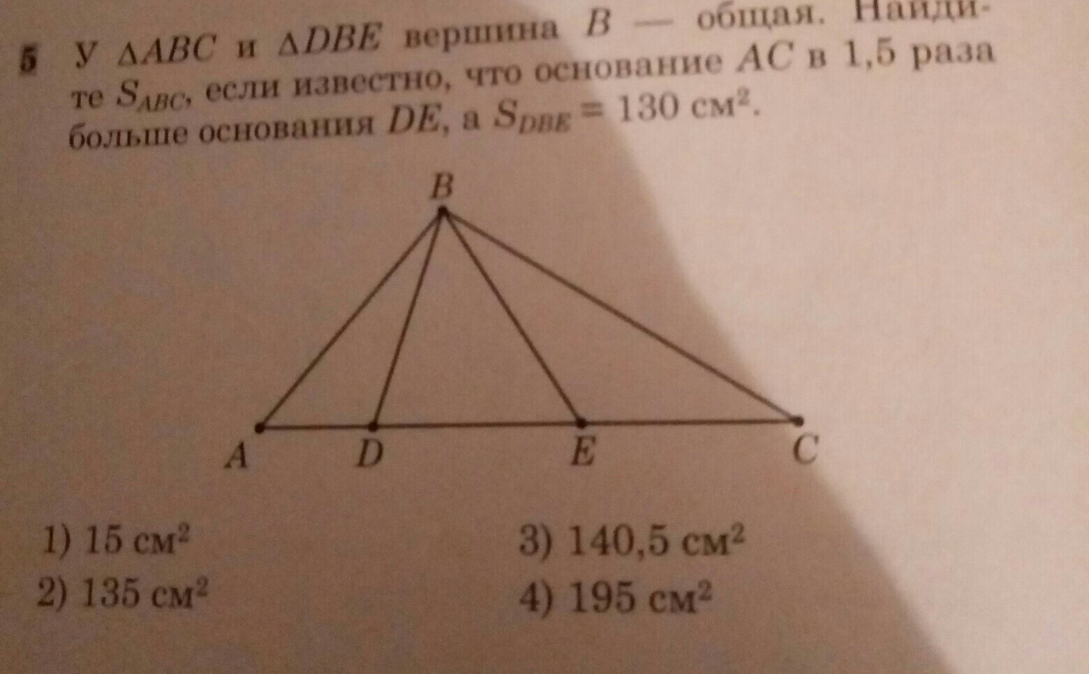 SΔDBE=x×BH=130см^2