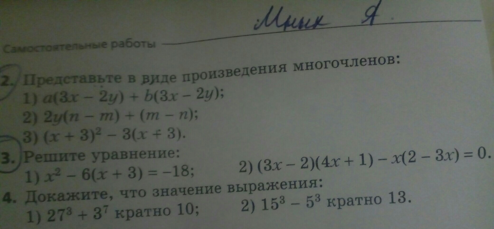 3) (x+3)² - 3(x+3) = (x+3)(x+3-3) = (x+3)x