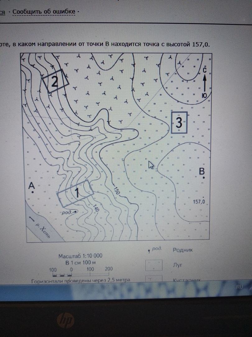 4. школьники выбирают место для катания на санках. определите какой из участков обозначенный на карте цифрами 1, 2 и 3 больше всего подходит для этого .