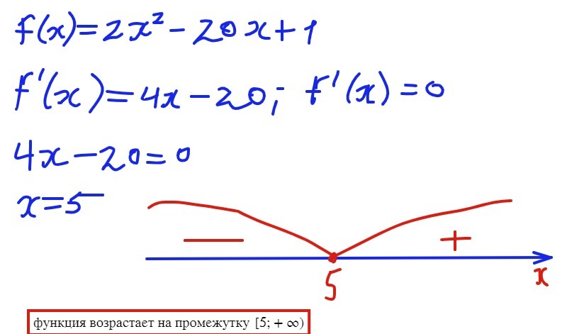 ответ : так как производная больше нуля на промежутке (5;+оо),то тут функция возрастает .